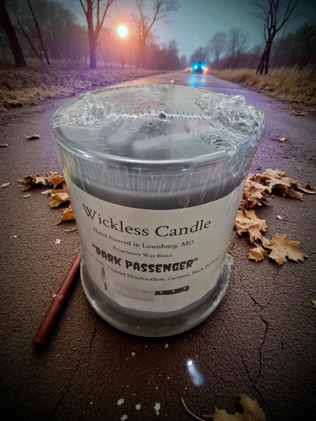 Embrace the spooky season with our limited-edition Dark Passenger 9 oz wickless candle. Savor cozy notes of dark rum, toasted marshmallow, black patchouli, caramel, and molasses that invite you to hide away in mysterious warmth. Perfect for casting a playful yet haunting glow this Halloween.